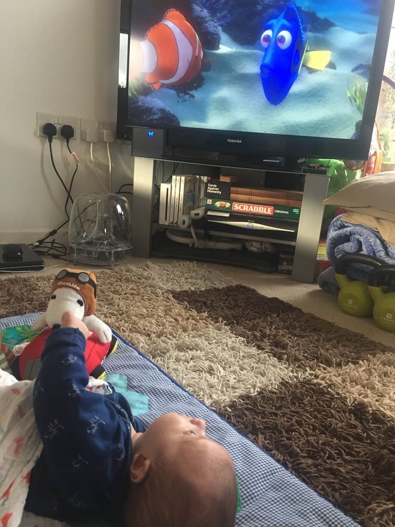 She got him started with the medium via one of Disney’s modern classics, Finding Nemo, and it appeared to be a pretty successful distraction for an hour or so.