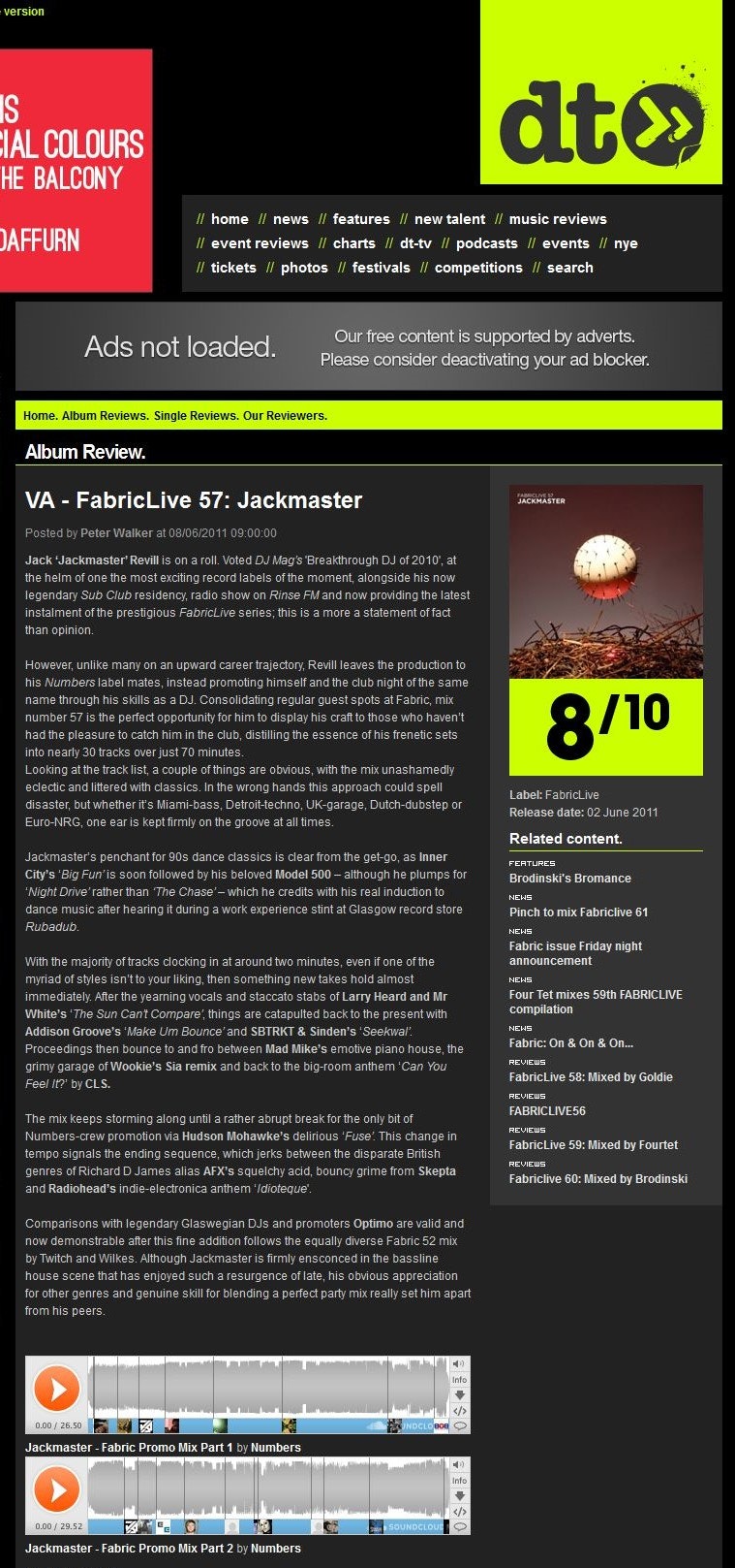 Jack ‘Jackmaster’ Revill is on a roll. Voted DJ Mag’s Breakthrough DJ of 2010, at the helm of one the most exciting record labels of the moment, alongside his now legendary Sub Club residency, show on Rinse FM and now providing the latest instalment of the prestigious FabricLive series; this is a more a statement of fact than opinion.