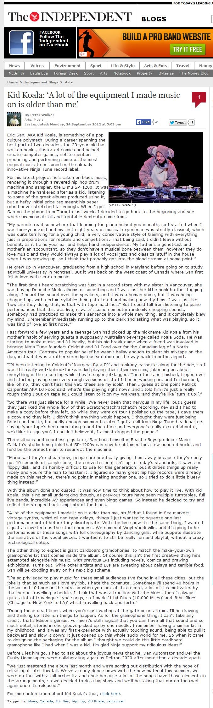 Eric San, AKA Kid Koala, is something of a pop culture polymath. During a career spanning the best part of two decades, the 33 year-old has written books, illustrated comics and helped create computer games, not to mention producing and performing some of the most original music to be found on the already innovative Ninja Tune record label.
