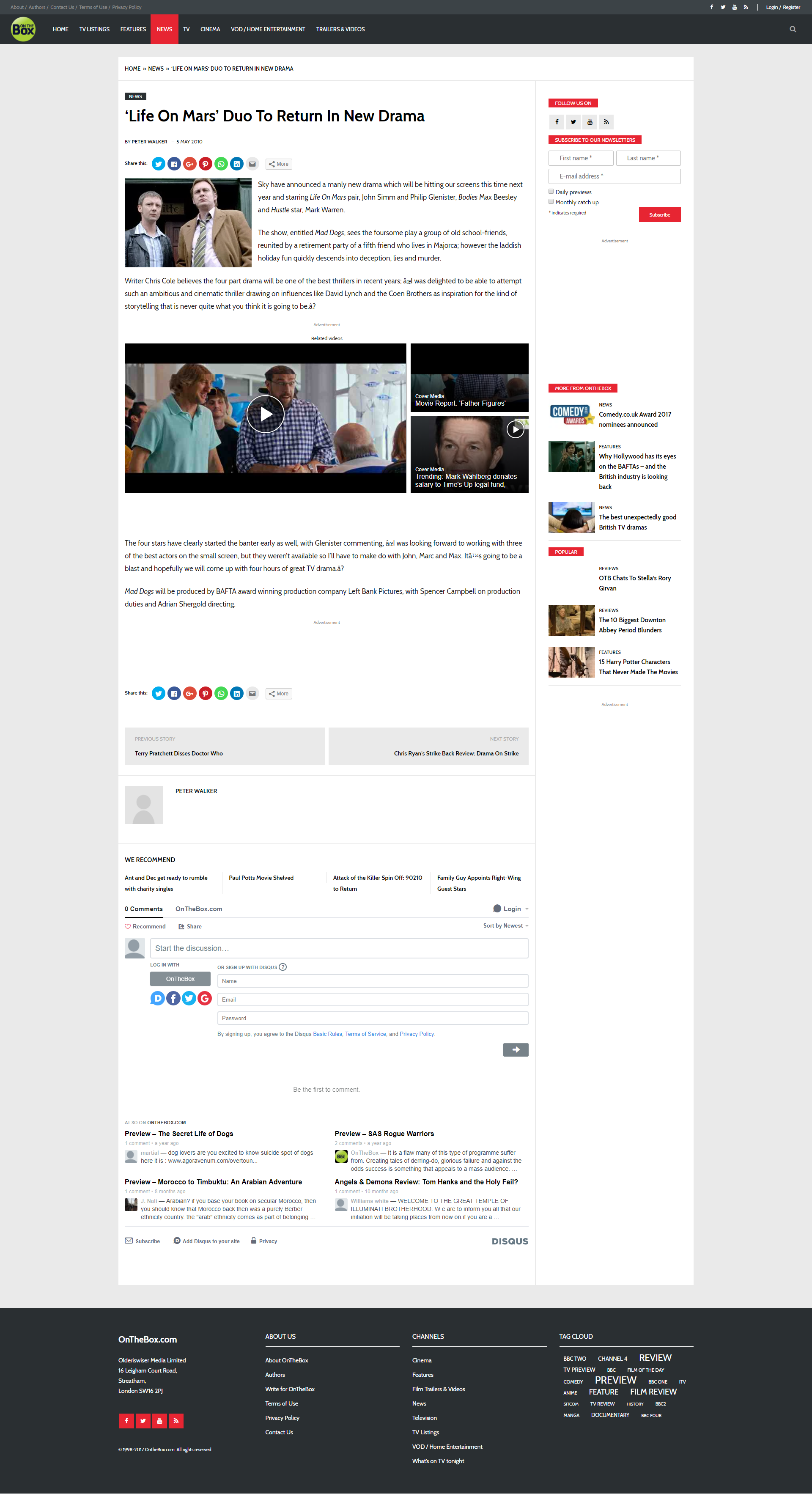 Sky have announced a manly new drama which will be hitting our screens this time next year and starring Life On Mars pair, John Simm and Philip Glenister, Bodies Max Beesley and Hustle star, Mark Warren.