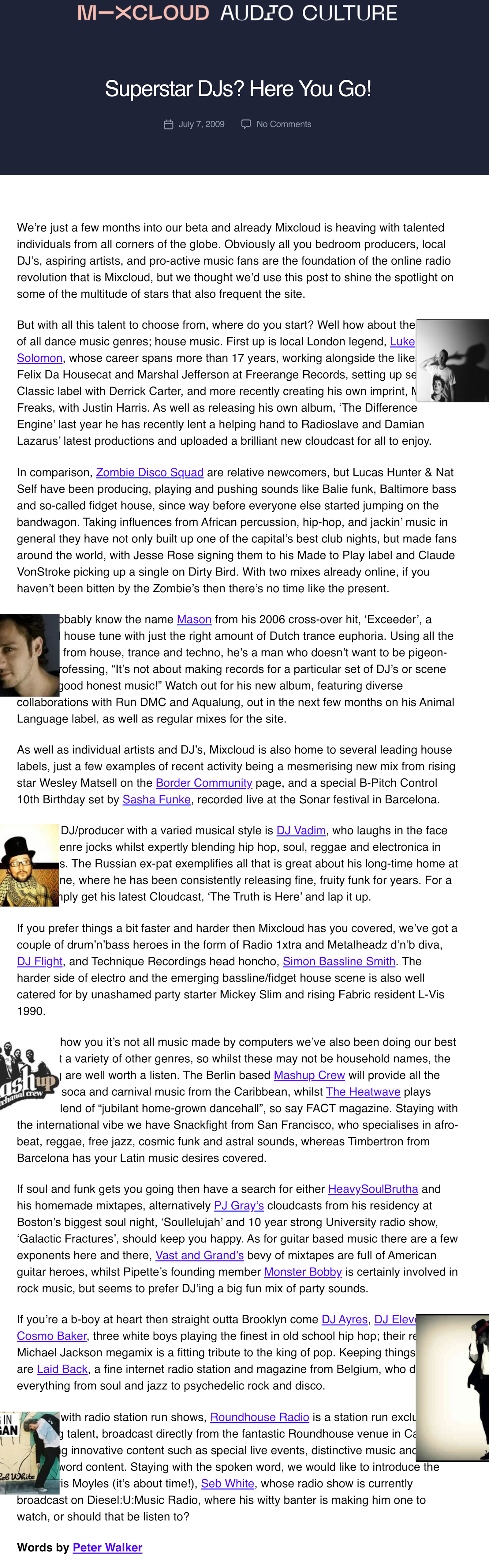 We’re barely out of beta mode and already the site is heaving with talented individuals from all corners of the globe. Obviously all you bedroom producers, local DJ’s, aspiring artists, and pro-active music fans are the foundation of the online radio revolution that is Mixcloud, but we thought we’d use this post to shine the spotlight on some of the multitude of stars that also frequent the site.