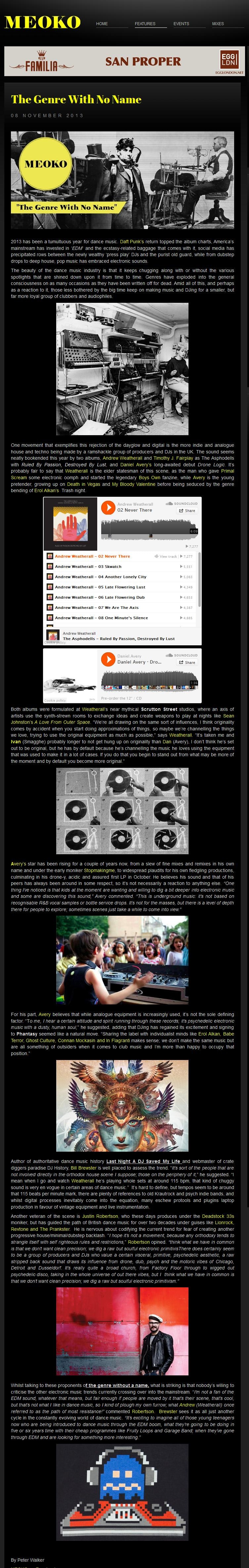 Avery’s star has been rising for a couple of years now, from a slew of fine mixes and remixes in his own name and under the early moniker Stopmakingme, to widespread plaudits for his own fledgling productions, and culminating in his drone-y, acidic and assured first album in October. He believes his sound and that of his peers has always been here in some respect, so it’s not necessarily a reaction to anything else. “One thing I’ve noticed is that kids at the moment are wanting and willing to dig a bit deeper into electronic music and some are discovering this sound,” Avery commented. “This is underground music: it’s not based on recognisable R&B vocal samples or bottle service drops. It’s not for the masses but there is a level of depth there for people to explore; sometimes scenes just take a while to come into view.”