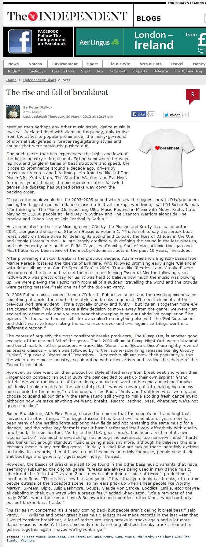 I love break beat. I love it because it’s one of the only genres of dance music that actually makes me dance. I remember seeing the Plump DJs and Stanton Warriors at The Arches in 2003 and bumping into a friend, who upon seeing me flailing limbs like an epileptic, was convinced I was on something; when it was just the infectious beat pattern to blame.