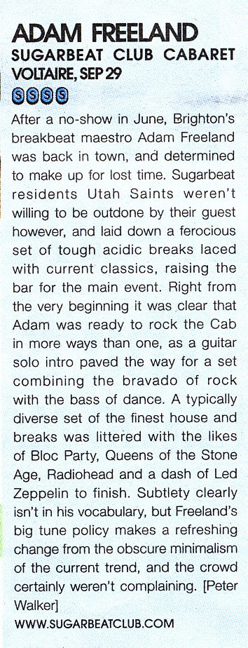 After a no show in June, Brighton’s breakbeat maestro Adam Freeland was back in town, and determined to make up for lost time.